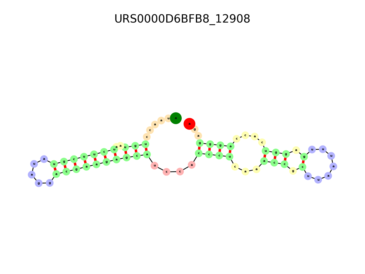 RS: URS0000D6BFB8_12908 MFE: -17.094 Ligand: 2'-dG-II Species: unclassified sequences 2'dG-II riboswitch |