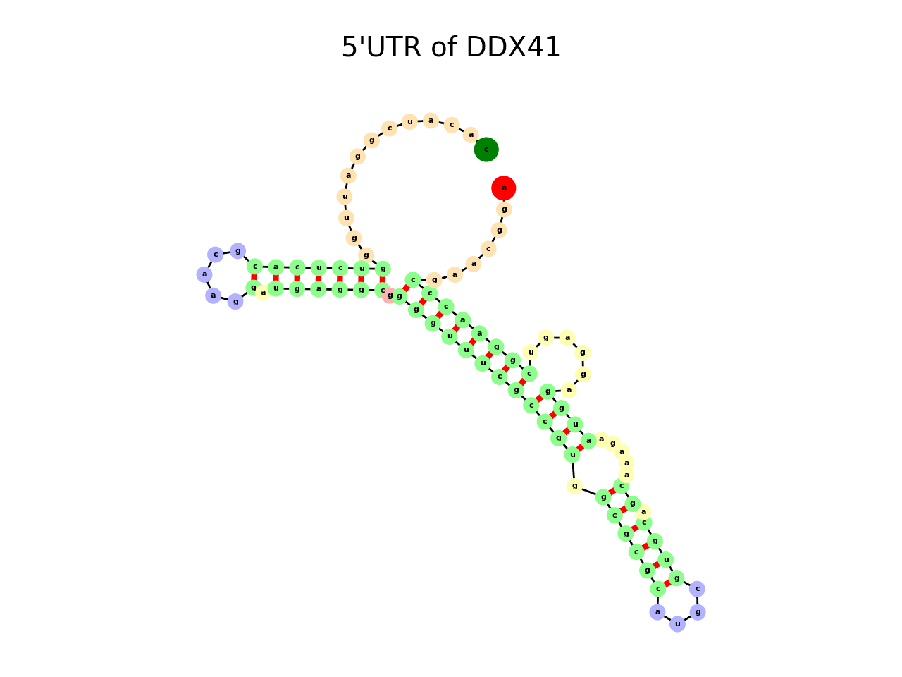 UTR: 5HSAA029108 Gene: DDX41 MFE: -26.291 ENS: 0.975 Length: 94. Predicted Ligands: TPP - 8/20 SAM - 5/20 tetrahydrofolate - 3/20 |